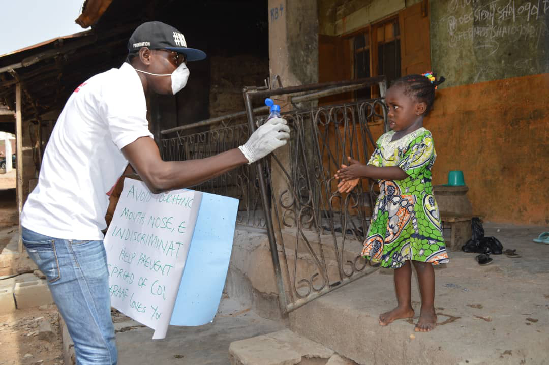 Following the ongoing effect of the pandemic, Coronavirus codenames COVID-19, the kwara born business mogul, also the founder of RAAF FOUNDATION, Alh. Engr. Rasaq Aliyu Apaguntan with all Raaf Foundation members took to many streets of his community in Shaare, Ifelodun local government area of Kwara State on Monday to give out over 2000 sanitisers.